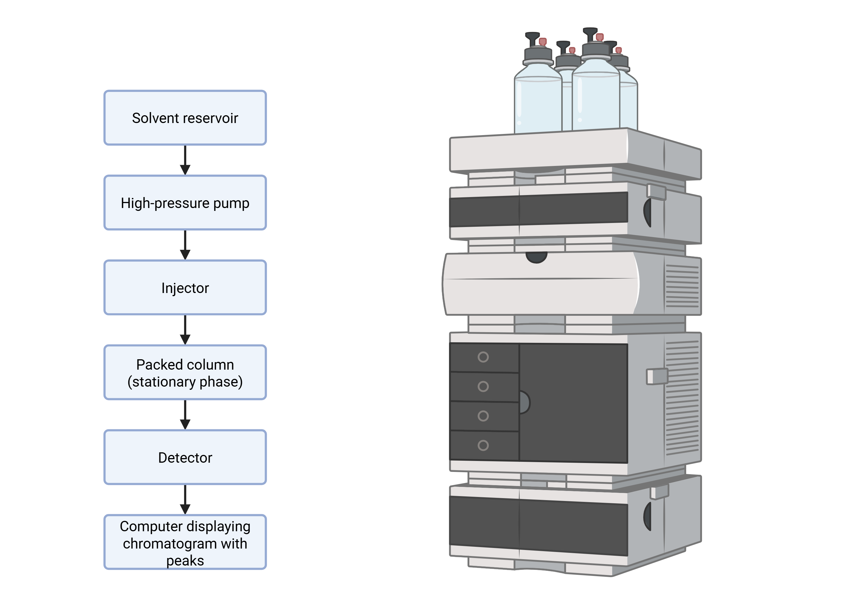 - Solvent Reservoir – Contains the mobile phase